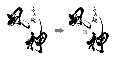 ❖朱印風の落款(らっかん)を加える → 和の伝統を想起させ、重みと格式を演出