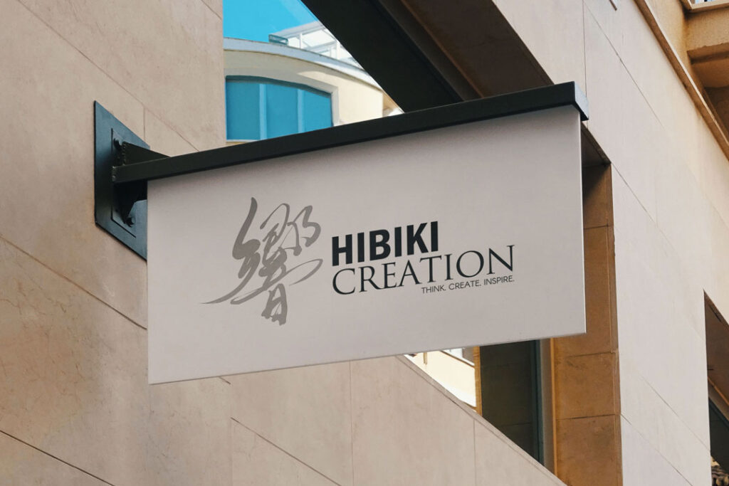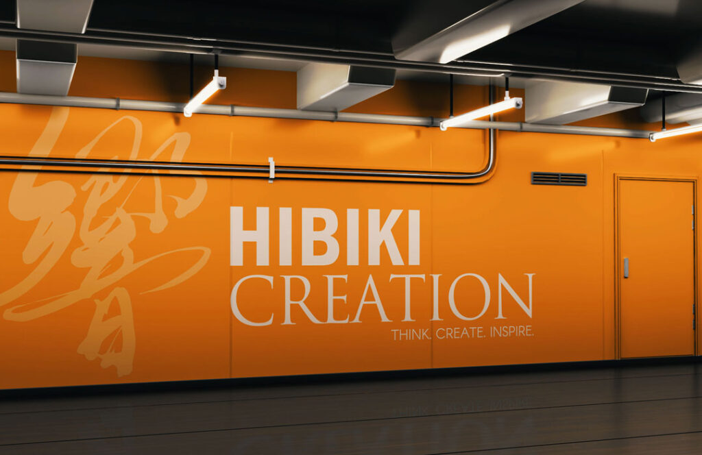 一方で、英字の「HIBIKI CREATION」は、全体の印象が重くなりすぎないよう、読みやすく落ち着いた書体を組み合わせています。毛筆の力強さと、文字情報としての明快さ、そのバランスを丁寧に探りながら構成しました。