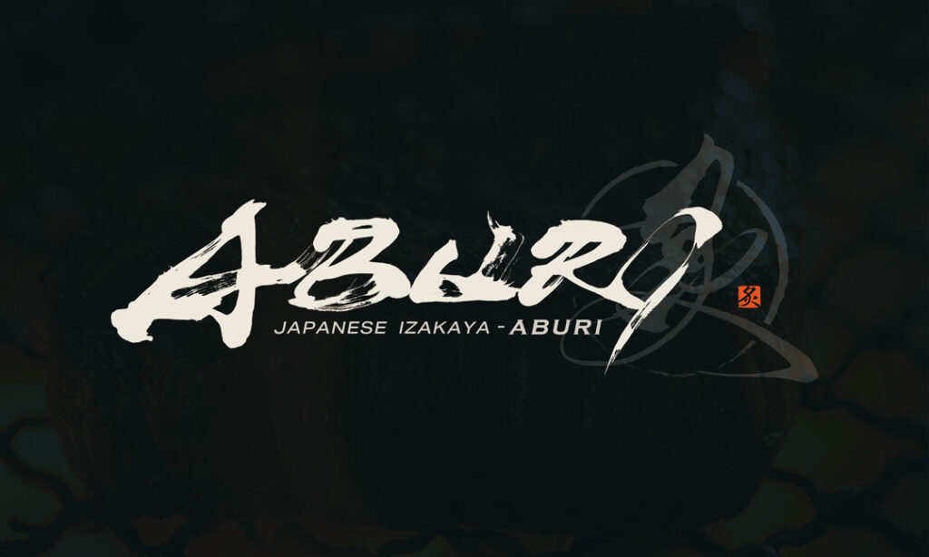 「ABURI」という言葉が持つ“火”や“香ばしさ”のニュアンスは、線のかすれや跳ね、筆圧の強弱によって表現しています。あえて均一に整えすぎず、手書きならではの揺らぎを残すことで、炭火の不規則な炎や、料理人の所作が感じられるよう意識しました。